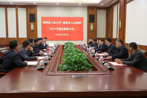 11月8日上午,18新利直播 与禹州市人民政府2019年度校市联席会议在科学校区双创中心第一会议室召开。禹州市委书记王宏武、市长范晓东、市人大常委会主任崔纪安、市政协主席赵书欣、副市长何长成、市委办公室主任晁保伟、财政局局长朱云雷、教体局局长陈凯民,校领导俞海洛、刘新田、方少明,校长办公室主任韩超、科技处处长张建伟、禹州校区综合服务中心直属党支部书记郗冰杰和主任刘俊校出席会议。会议由党委书记俞海洛主持。