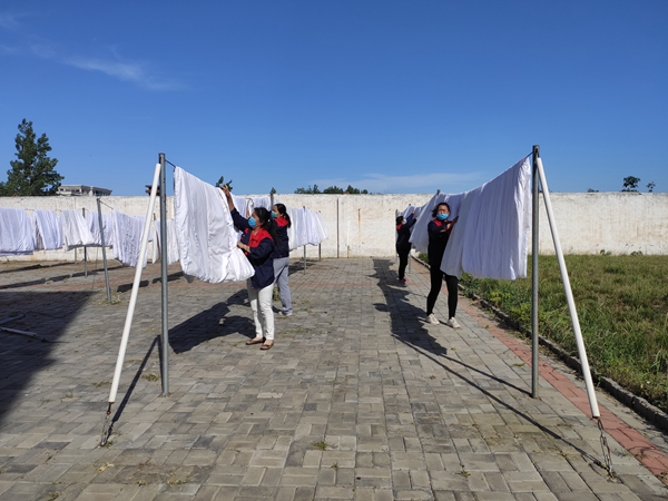 受新冠疫情影响,禹州校区学生公寓已有5个月未曾开放。近日,天清气朗,阳光明媚,为迎接返校学生,让同学们拥有一间充满阳光味道的宿舍,禹州校区综合服务中心组织人员对学生公寓被褥进行了晾晒。