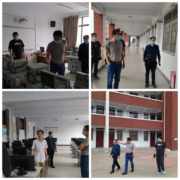 在校区南门、金工车间、电子电工实训中心、办公室、学生食堂、学生宿舍,郗书记仔细询问出入人员防控和教学场所消毒情况,听取了各科室等负责人关于卫生环境治理措施情况的汇报。