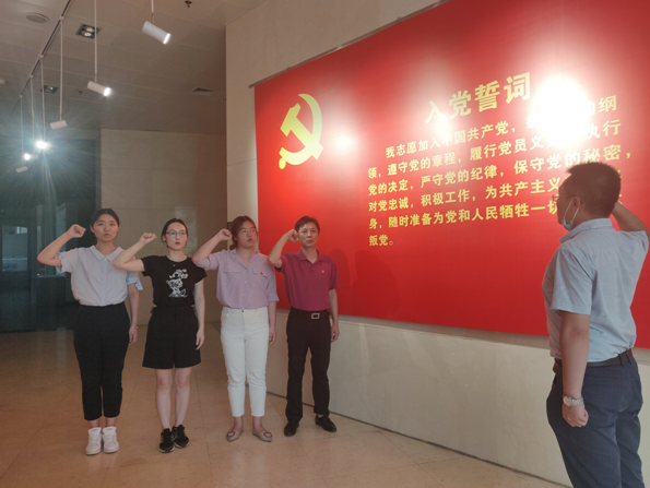 在黄河博物馆第一展区党旗下,由孙铁山同志领誓,支部全体党员庄严的重温入党誓词。通过流域地理、民族摇篮、千秋治河、治河新篇、和谐之路五个展区的参观,党员们学习了中华民族在与黄河水患的斗争中展现出的不屈不挠、顽强拼搏的奋斗精神,感悟到黄河七十年的安澜充分证明中国共产党的伟大、人民力量的强大和社会主义制度的优越性,更加增强了“四个自信”,更加坚定了理想信念。