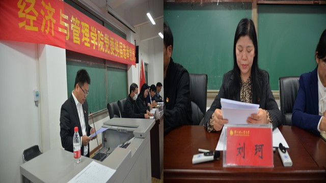 10月8日下午,经济与管理学院党委在经管楼211室召开换届选举党员大会。会议由刘珂同志主持,全院师生党员129人参加会议,校党委组织部副部长邹娟到会指导。