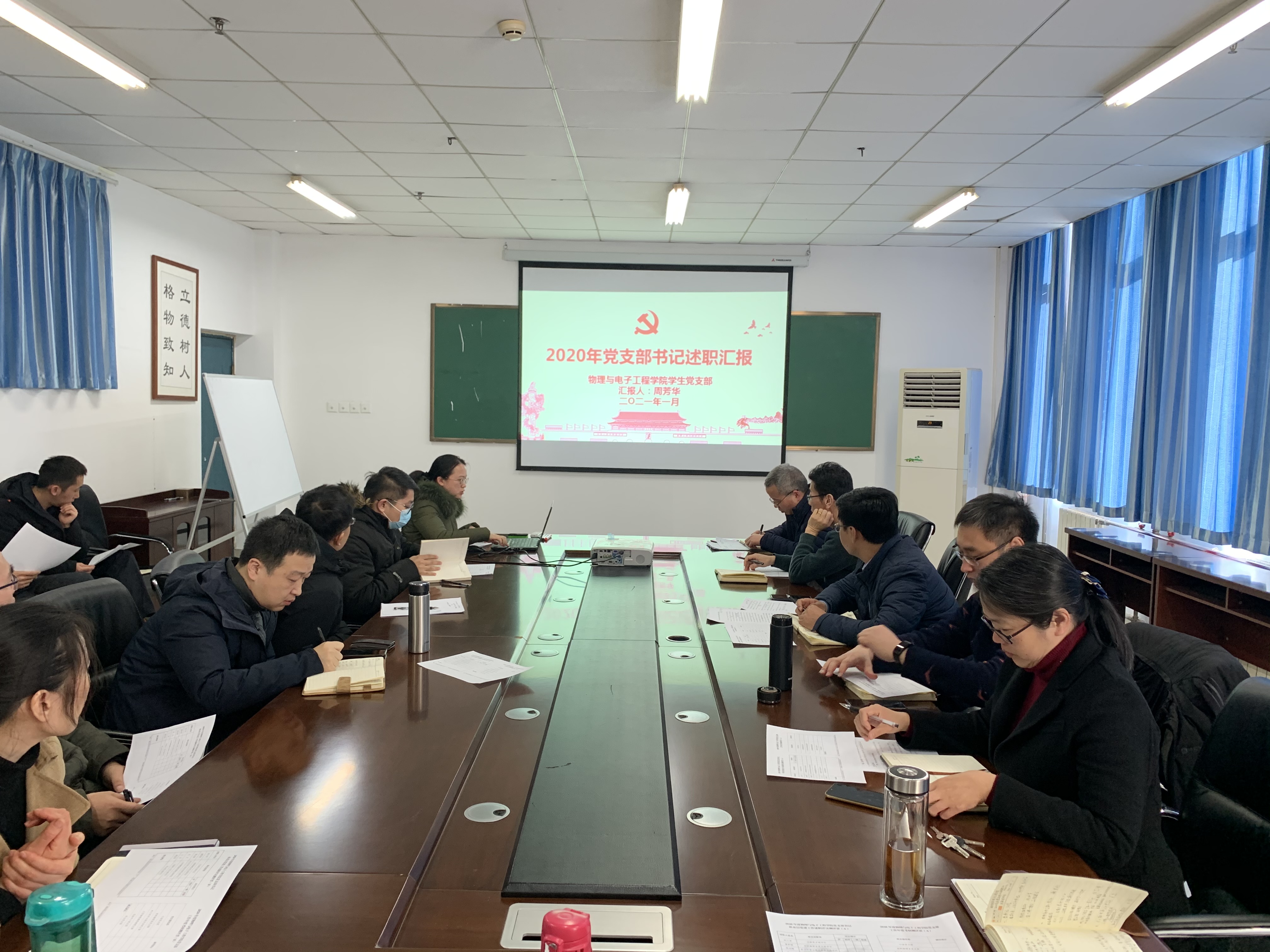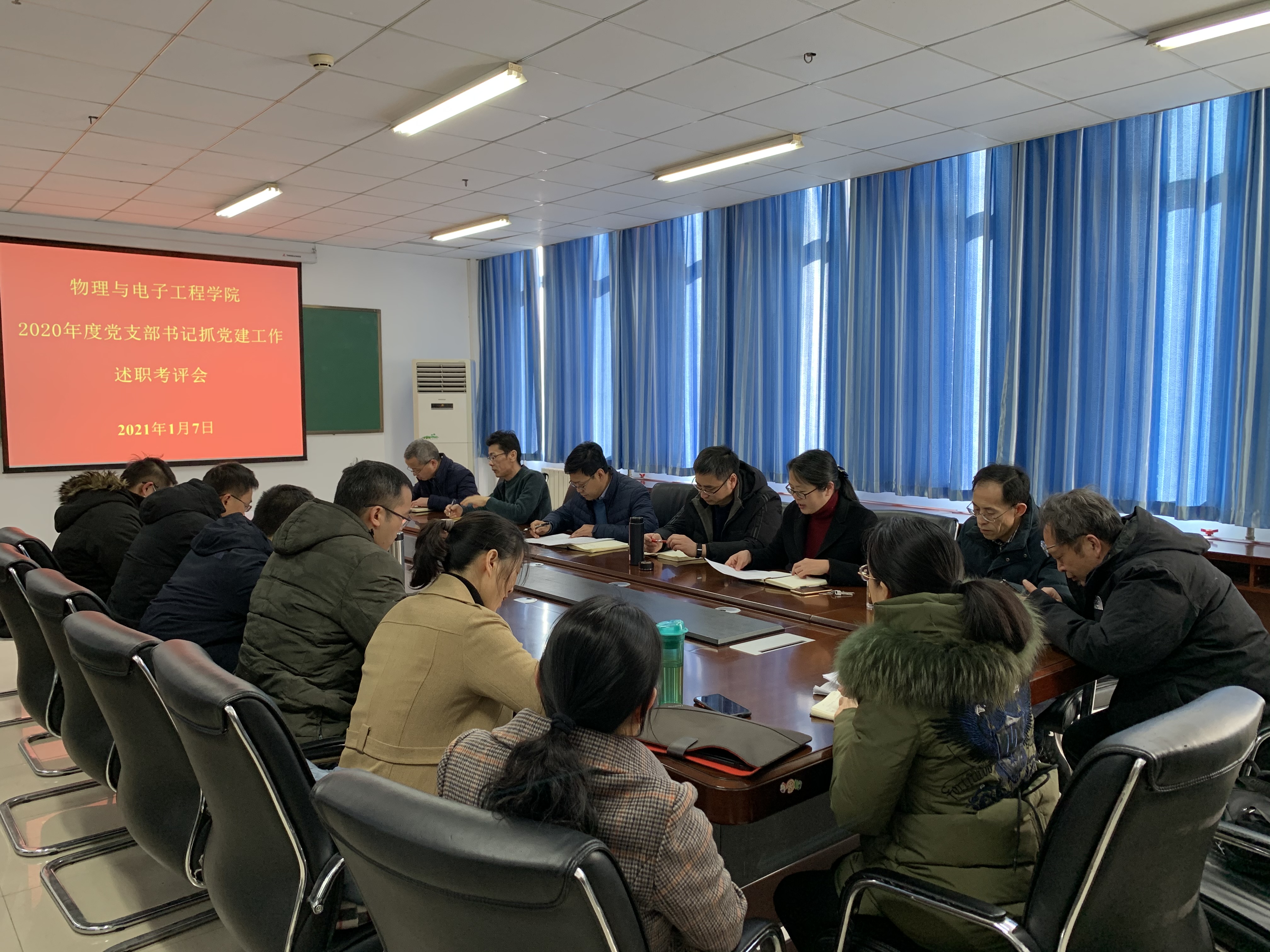 1月7日上午,物理与电子工程学院在四教楼510会议室召开了党支部书记抓基层党建工作述职评议会。学院党委委员、支部书记和党员代表参加会议。会议由学院党委副书记李玲主持。
