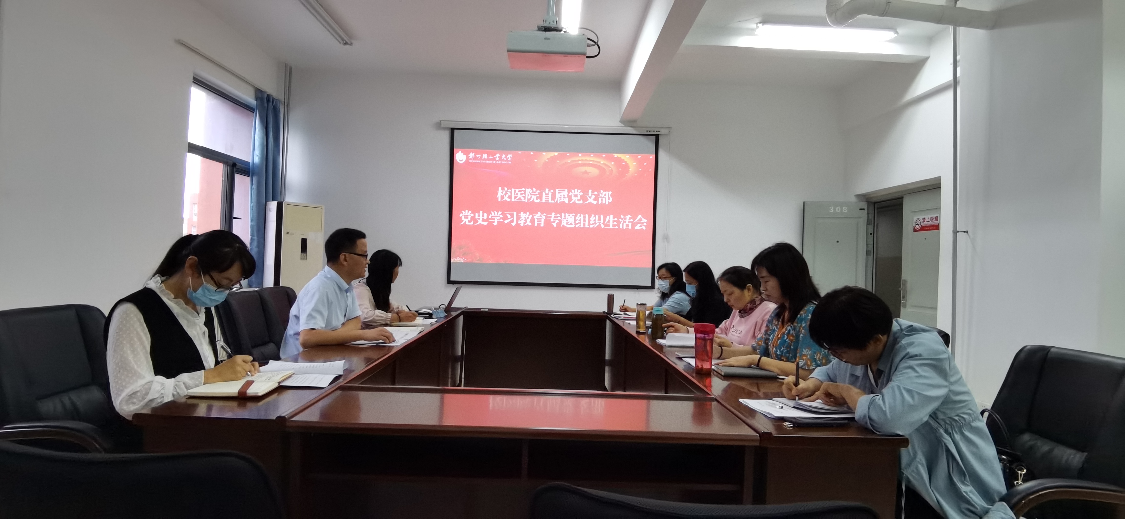 为进一步推动党史学习教育落地落实,根据校党委组织部《关于召开党史学习教育专题组织生活会的通知》精神,8月31日,校医院直属党支部在科学校区会议室召开党史学习教育专题组织生活会,全体党员参加了会议,会议由直属党支部书记顾鹏举主持。
